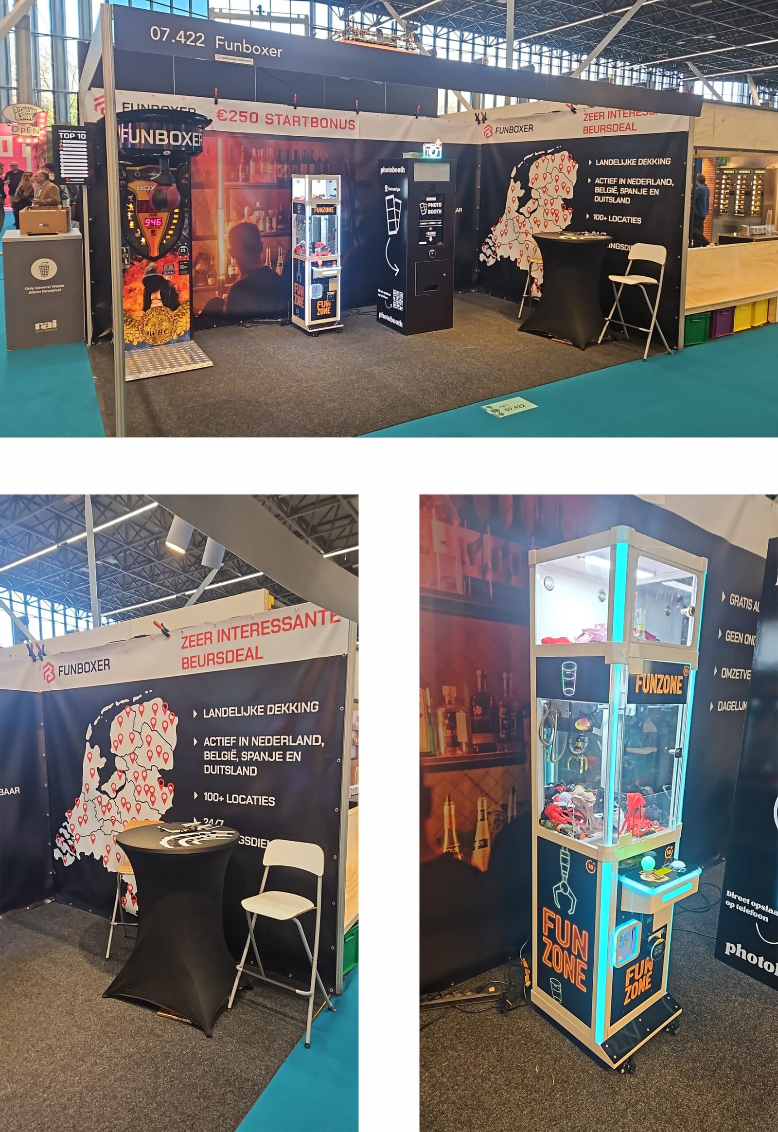 Designed the display stand made for Funboxer, including the wrapping for the boxing and claw machines. DTP design for hand-out flyers, including a QR-code directing costumers to a landing page. www.cremers-exploitatie.nl